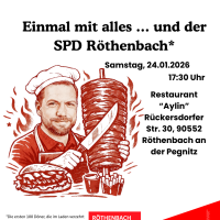 Um 17:30 Uhr folgte das Highlight des Tages: Die SPD Röthenbach an der Pegnitz hatte ins Restaurant „Aylin“ in der Rückersdorfer Straße eingeladen – zum gemeinsamen Döneressen. Die ersten 100 Döner gingen auf die Rechnung des Bürgermeisterkandidaten und der SPD Röthenbach an der Pegnitz.
