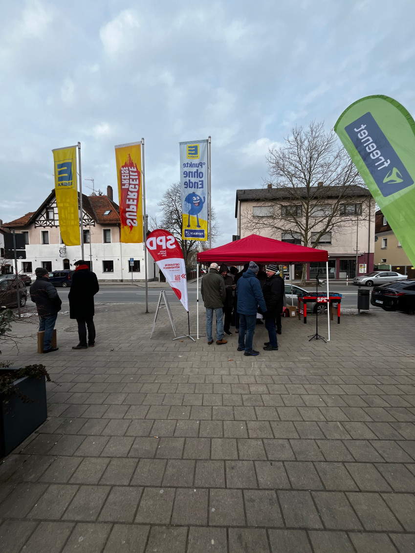 Ein besonderer Schwerpunkt war die Unterschriftensammlung zum Neubau eines Hallenbads in Röthenbach an der Pegnitz – am bisherigen Standort am Schulzentrum. Mit ihrer Unterschrift sprechen sich Bürgerinnen und Bürger aus Röthenbach an der Pegnitz sowie aus dem Landkreis Nürnberger Land ausdrücklich dafür aus, die Planung und Errichtung eines neuen Hallenbads im Stadtgebiet Röthenbach an der Pegnitz voranzubringen. Viele nutzten die Gelegenheit, einige Besucherinnen und Besucher kamen sogar gezielt zur Unterschriftabgabe vorbei. Und wer wollte, konnte unsere Kandidierenden außerdem zu einer Runde Kicker herausfordern – bei winterlichen Temperaturen eine willkommene Möglichkeit, sich zwischendurch wieder aufzuwärmen.